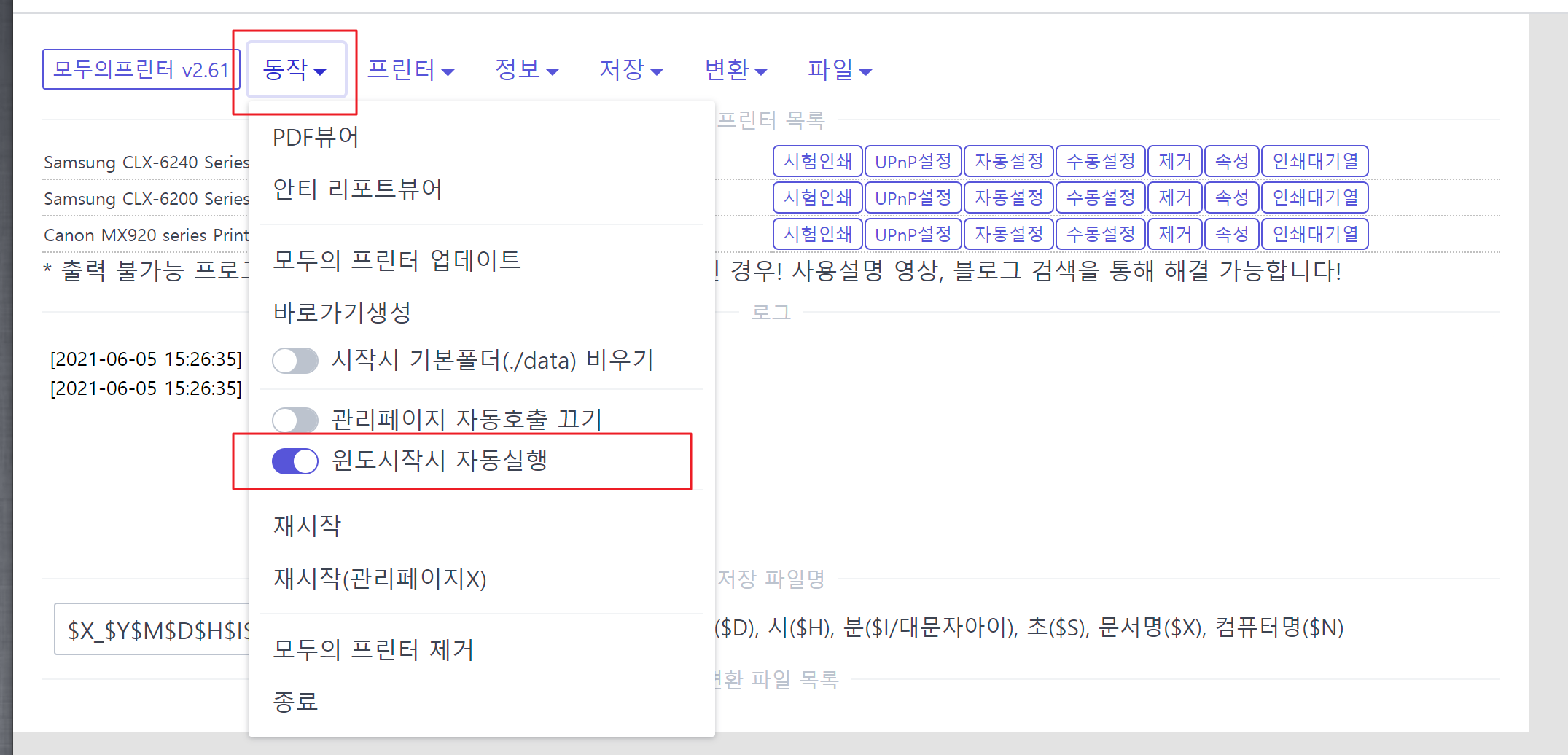 모두의 프린터 자동실행 등록하기