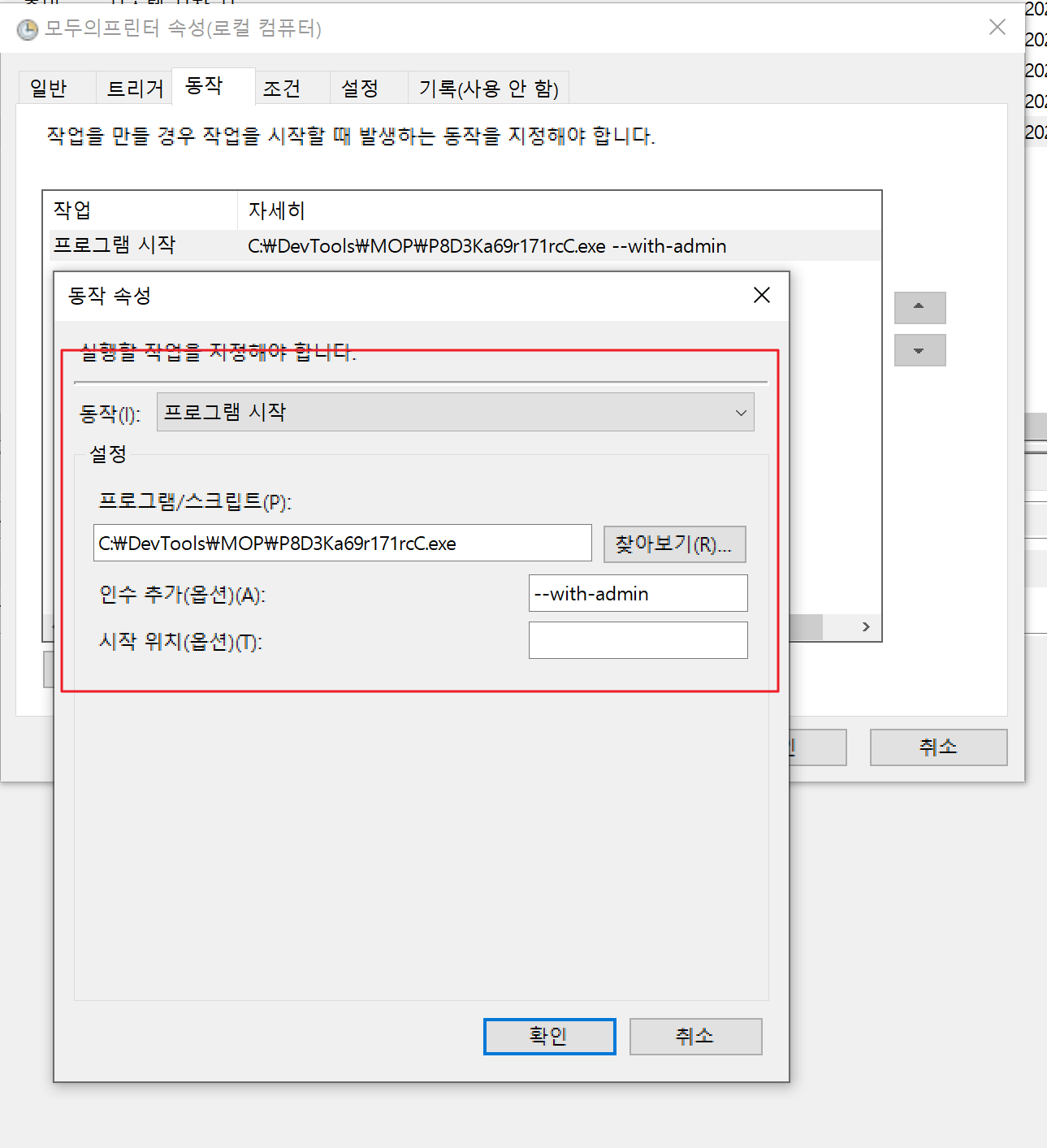 작업스케쥴러로 등록해서 실행하면 "관리자권한으로 .... "이 뜨지 않습니다.