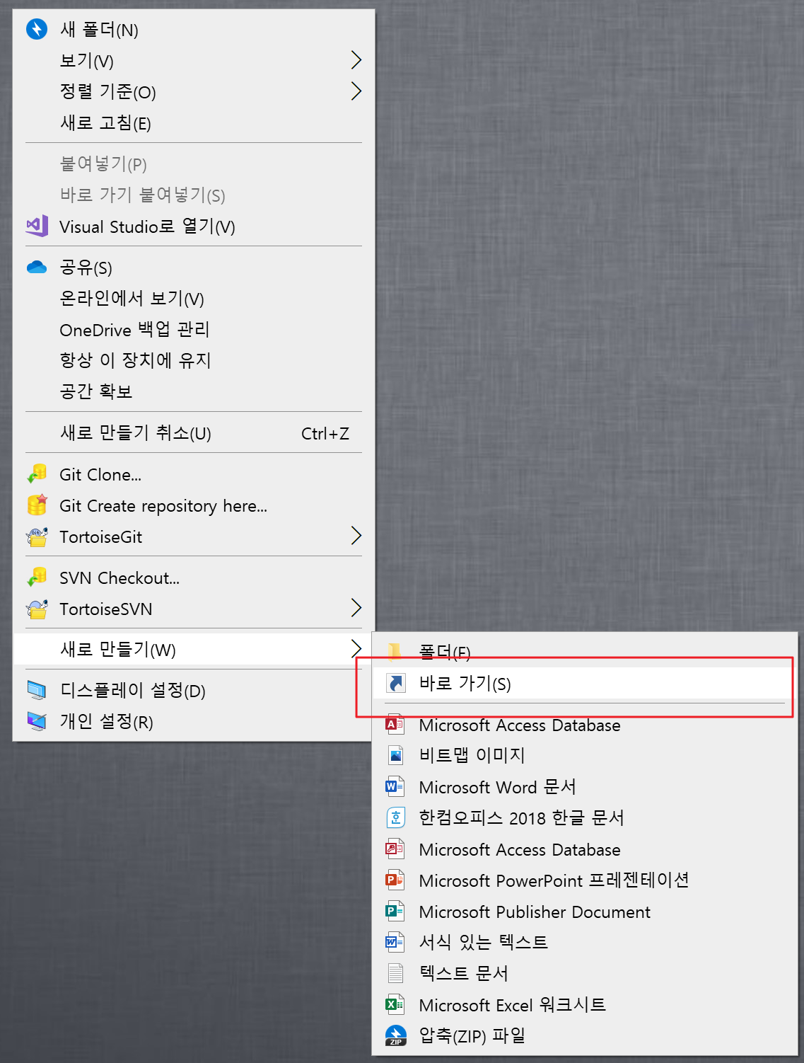 오른쪽마우스 새로만들기로 바로가기를 만들어 줍니다.